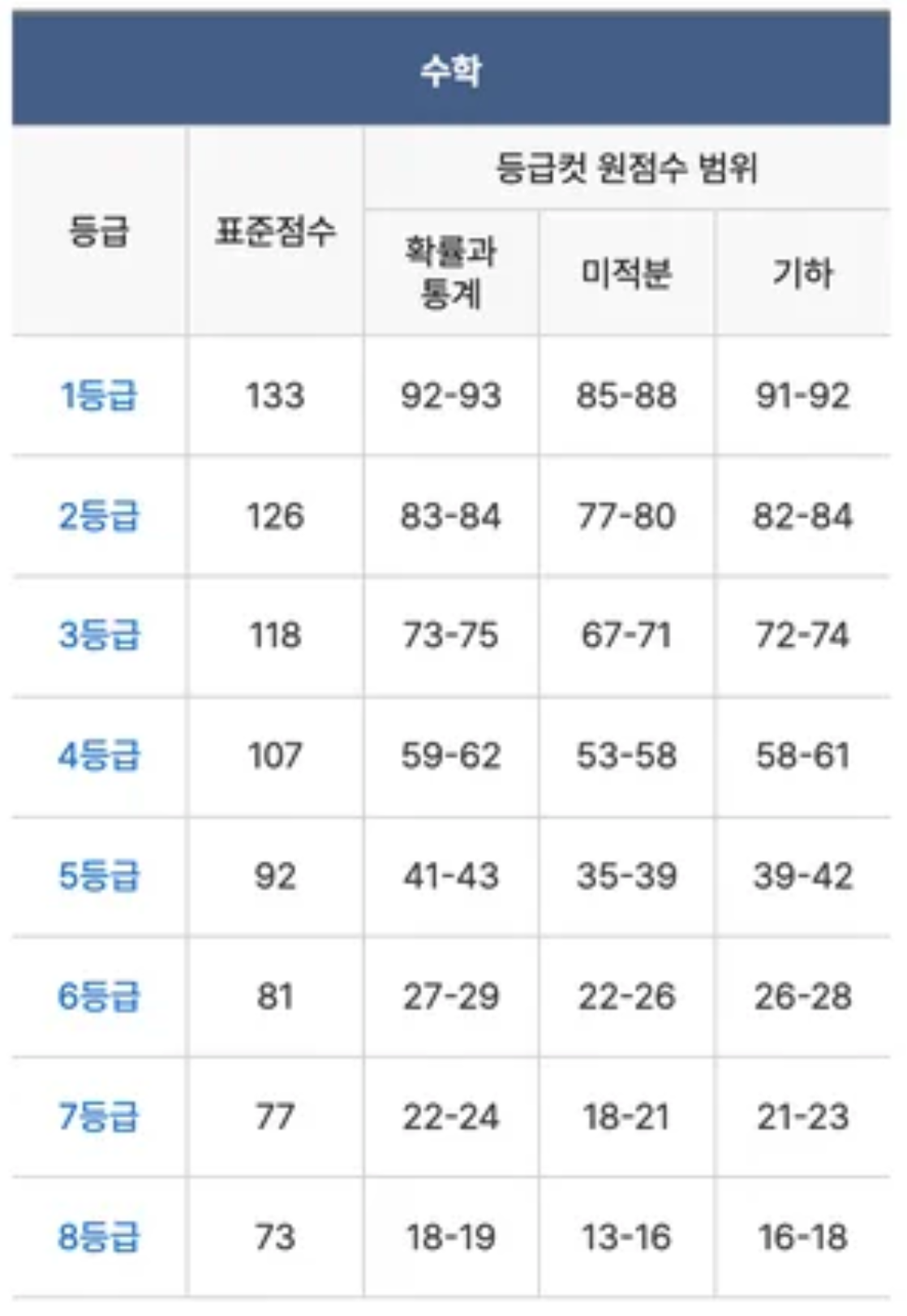 1등급 예측 점수 범위