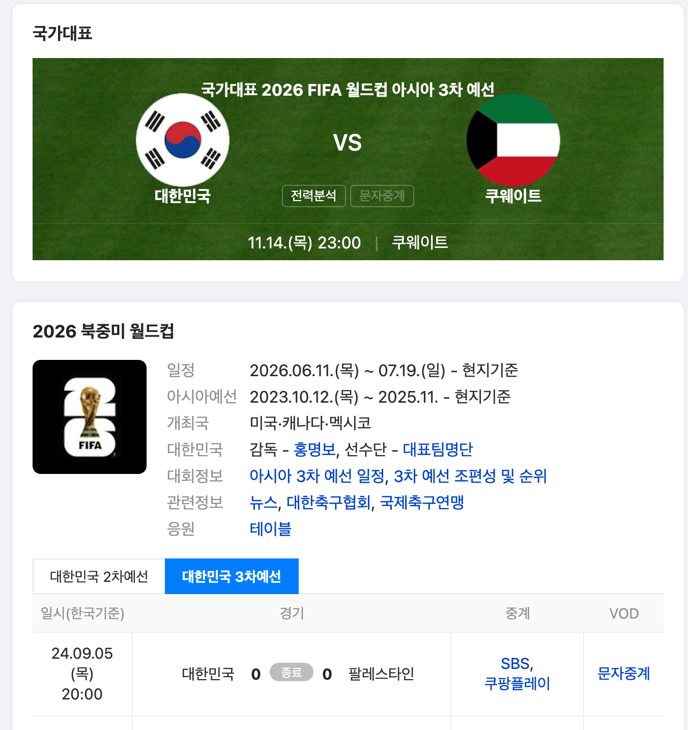 대한민국 vs 쿠웨이트 2026 FIFA 월드컵 아시아 3차 예선 경기
