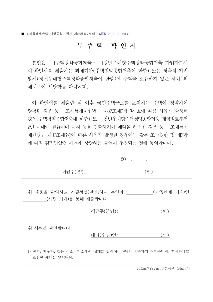 청년 및 신혼부부를 위한 무주택확인서