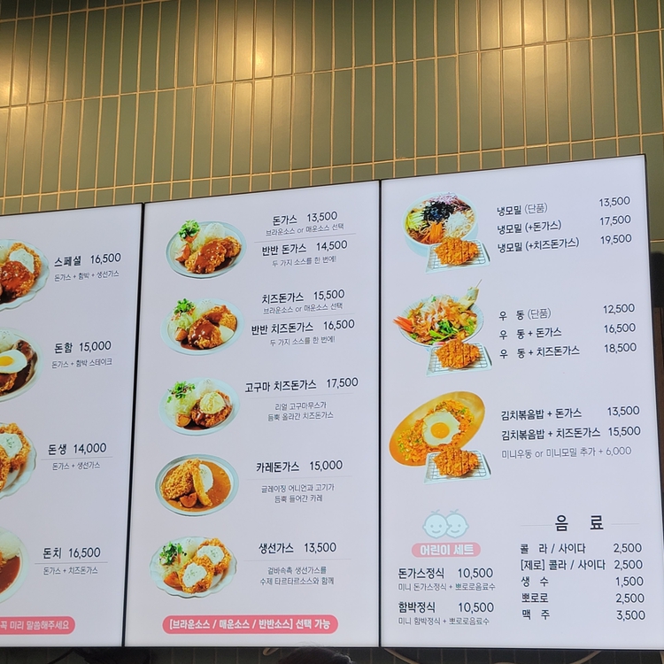 대표 메뉴는 정성돈가스 세트와 치즈 돈가스입니다. 정성돈가스 세트는 바삭하게 튀긴 돈가스와 샐러드, 밥, 국 등으로 구성되어 푸짐하게 한 끼 식사를 즐길 수 있습니다. 치즈 돈가스는 고소한 치즈가 돈가스 안에 가득 차 있어 씹을 때마다 고소한 풍미가 입안에 가득 퍼집니다. 또한, 카레 돈가스와 새우 튀김도 제공하여 돈가스 외에도 다양한 메뉴 선택지가 있습니다.