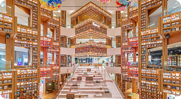스타필드 수원점 별마당 도서관은 국내외에서 사랑받는 대표적인 복합 문화 공간입니다. 이 도서관은 쇼핑몰 한가운데 위치해, 단순한 서점 이상의 경험을 제공합니다. "별마당"이라는 이름에서 느껴지듯이 별처럼 빛나는 지식의 공간이라는 의미를 담고 있으며, 스타필드 내부에서 누구나 자유롭게 드나들 수 있는 열린 공간입니다. 수원 별마당 도서관은 스타필드의 다른 도서관과 비슷하면서도 지역적 특색을 살린 디자인과 구성으로 수원 지역민에게 큰 인기를 얻고 있습니다.