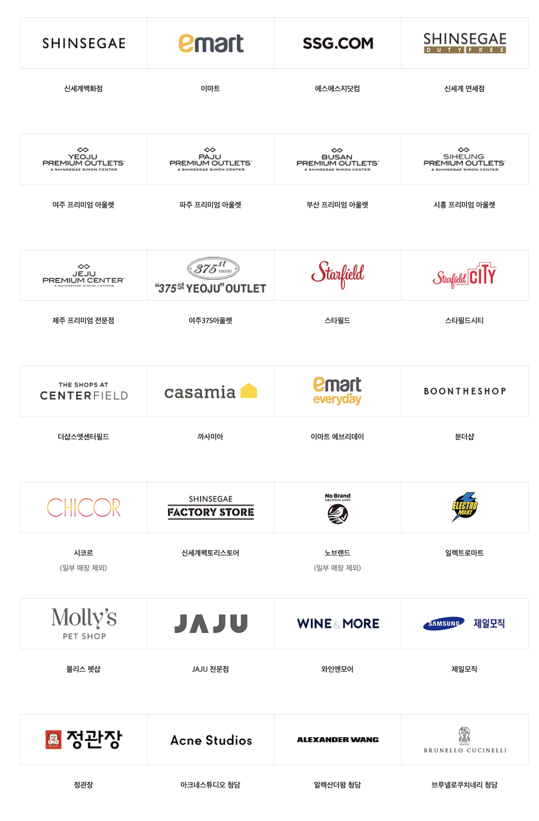 신세계백화점은 신세계 상품권의 대표적인 사용처로, 전국의 신세계백화점 지점에서 다양한 패션, 뷰티, 전자제품 등을 구매할 수 있습니다. 신세계백화점에서 고급 브랜드를 포함한 다양한 상품을 만나볼 수 있으며, 쇼핑 외에도 F&B 서비스나 문화센터 강좌 등 여러 서비스를 상품권으로 이용 가능합니다.