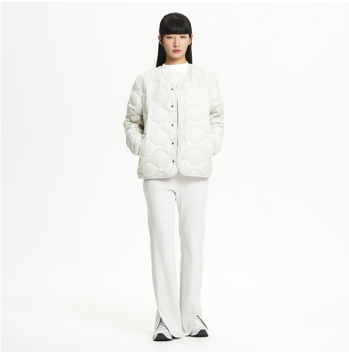 👉 웨이브 퀄팅은 다운을 균일하게 고정해 모양이 흐트러짐 없이 오랫동안 유지되며, 스타일리시한 슬림 실루엣을 제공합니다.