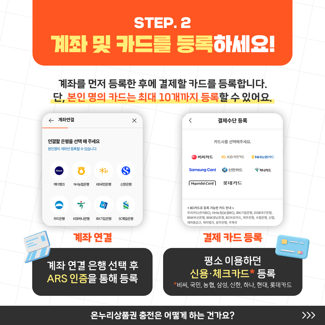 온누리상품권은 카드포인트를 통해 충전할 수 있습니다. 사용하지 않고 쌓여 있던 카드포인트를 온누리상품권으로 전환할 수 있으며, 전환 시 2%의 추가 충전 혜택을 받을 수 있습니다. 현재 현대카드, 신한카드, 삼성카드, 롯데카드 등 다양한 카드사의 포인트 전환이 가능하며, 카드사마다 제공하는 혜택이 다를 수 있습니다. 이를 통해 소비자는 자신의 카드 포인트를 유용하게 활용할 수 있습니다.
