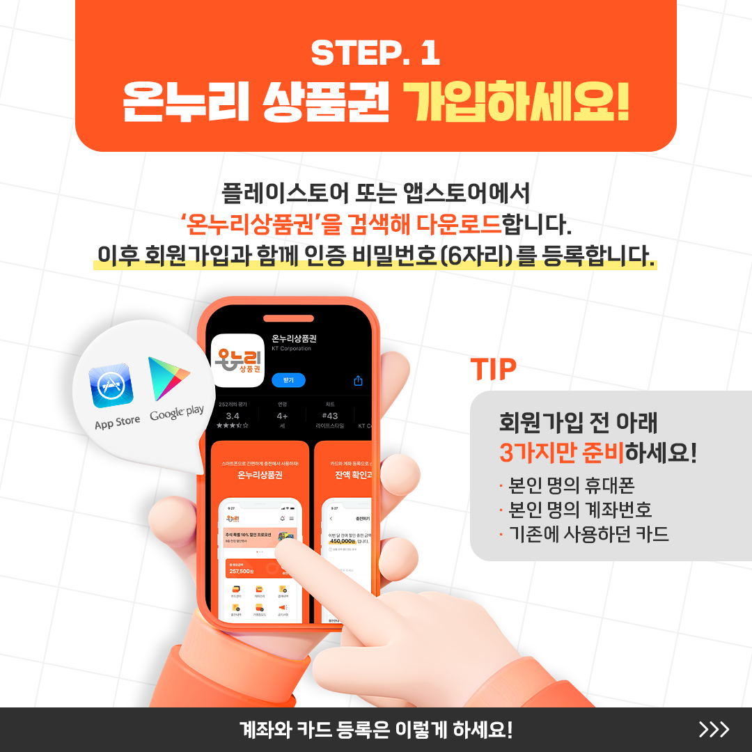 과거에는 온누리상품권이 종이 형태로 제공되었으나, 이제는 모바일 앱을 통해 디지털 상품권으로도 사용 가능합니다. 온누리상품권 앱을 통해 간편하게 구매, 충전, 사용이 가능해졌으며, 가맹점을 쉽게 찾을 수 있는 기능도 추가되었습니다. 소비자는 플레이스토어나 앱스토어에서 앱을 다운로드하고 간단한 인증 절차를 거쳐 온누리상품권을 사용할 수 있습니다. 이 과정에서 본인 명의의 휴대폰과 계좌번호, 기존 카드만 있으면 별도의 카드 발급 없이도 등록이 가능해 사용이 매우 편리합니다.