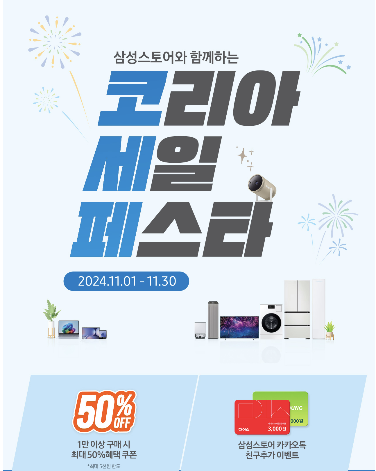 이번 2024년 코리아세일페스타는 11월 1일부터 30일까지 진행되며, 삼성전자 역시 자사 온라인 스토어와 오프라인 매장을 통해 풍성한 혜택을 선보입니다.