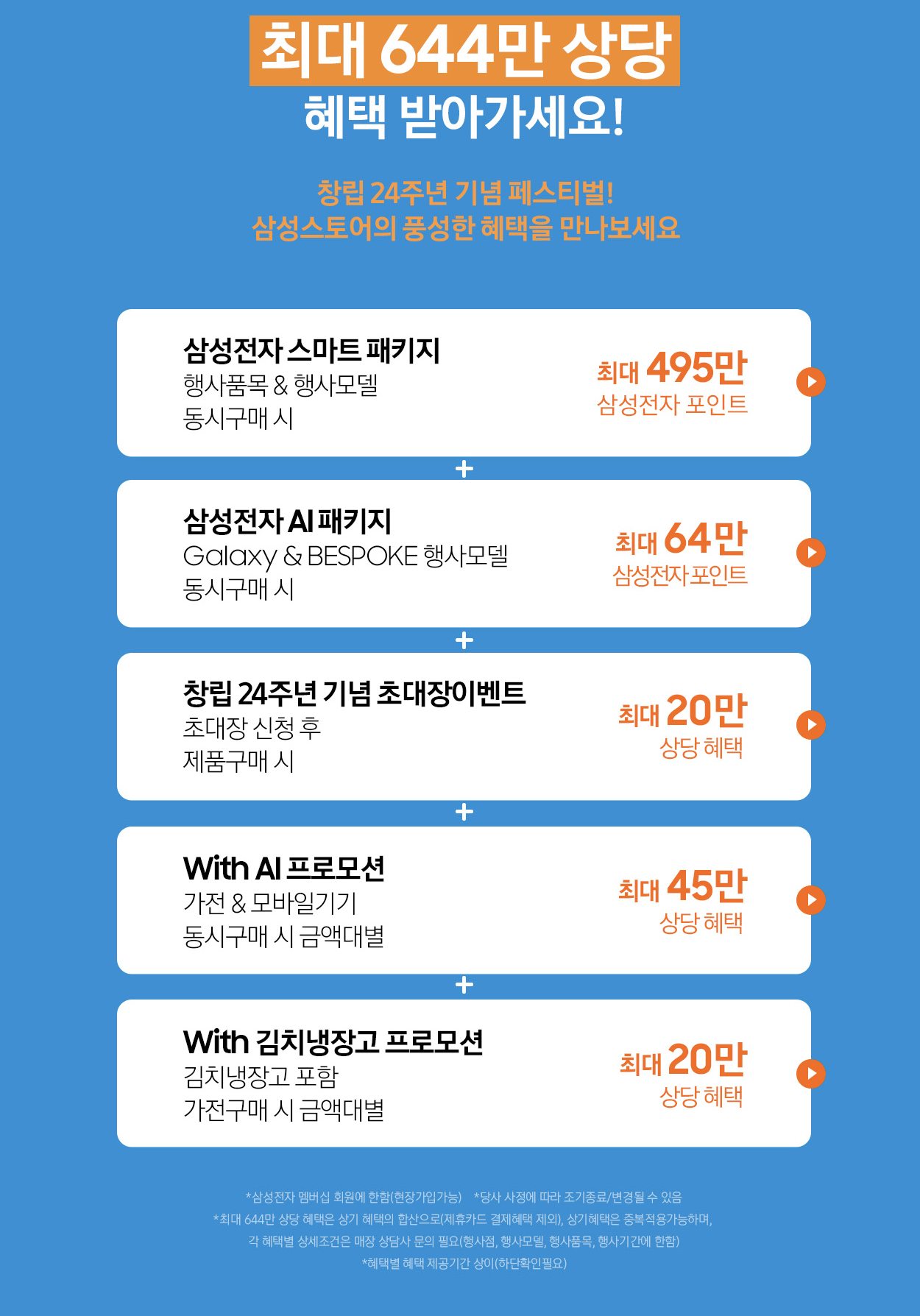 - 스마트 패키지: 가전제품 2종 이상 구매 시 최대 495만 삼성전자 포인트 제공