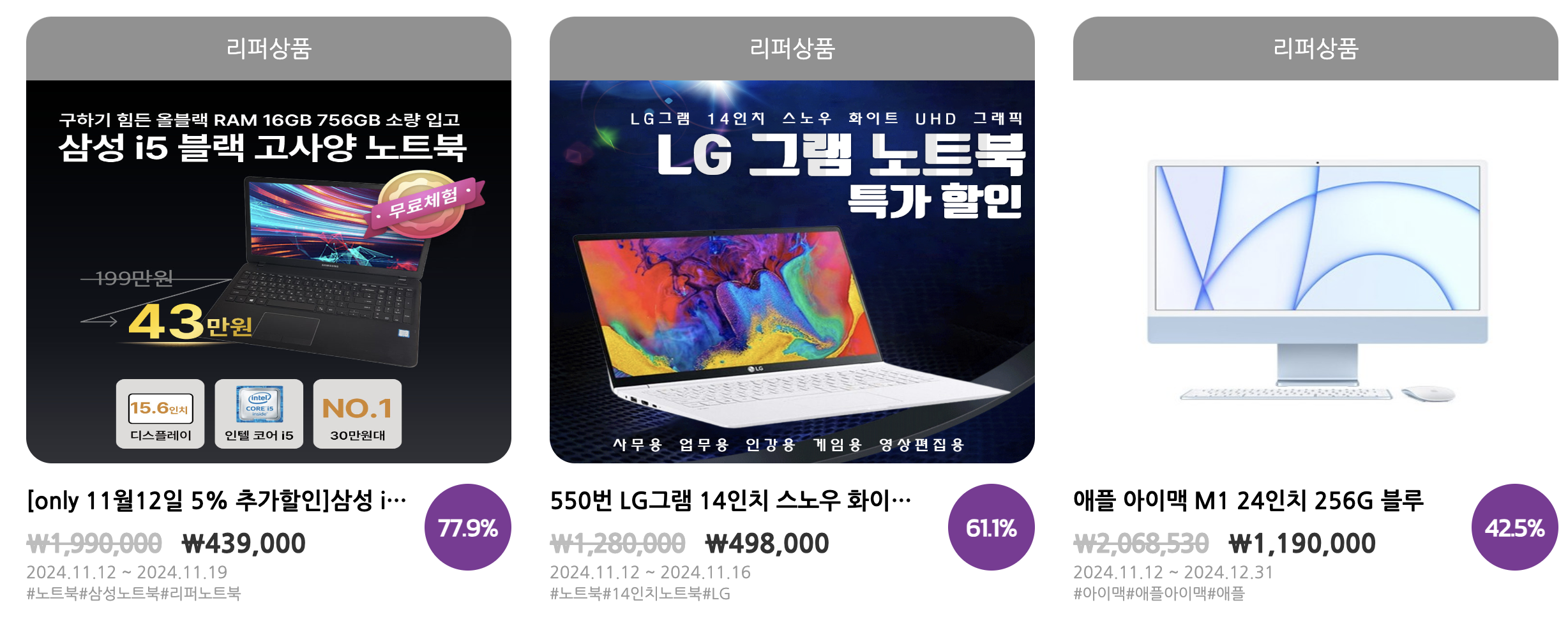 코리아세일페스타 기간 동안 노트북은 다양한 가격대와 할인율로 제공됩니다. 저렴한 입문용 노트북부터 고가의 전문가용 모델까지 폭넓은 선택이 가능하며, 할인 폭도 넓게 적용되어 예산에 맞는 제품을 찾기 용이합니다. 일부 보급형 노트북은 20-30만 원 대의 파격적인 할인 혜택이 제공되며, 고가의 게이밍 노트북이나 전문가용 노트북은 최대 40% 이상 할인된 가격에 구매할 수 있습니다.