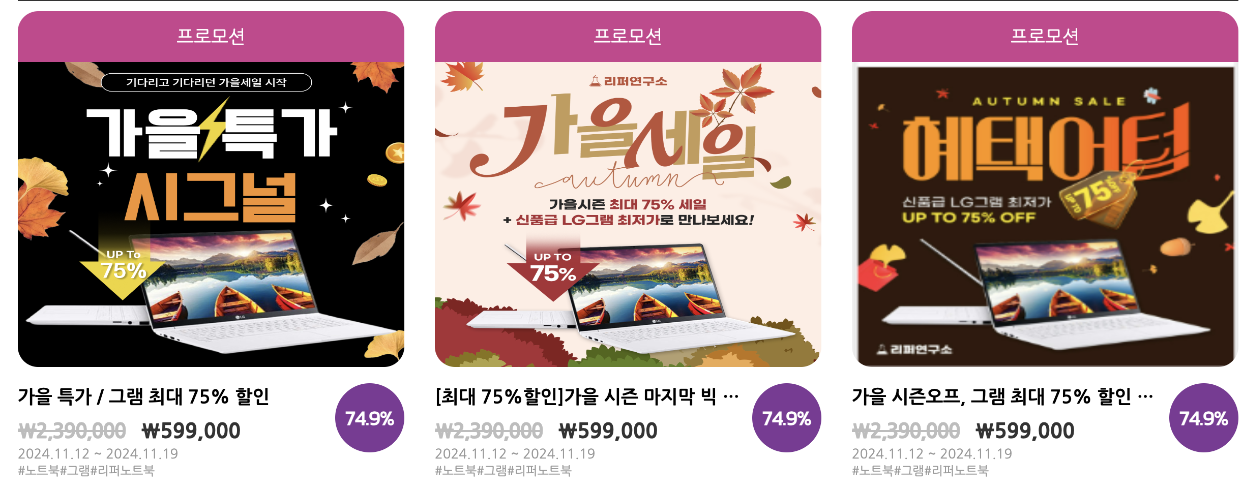 코리아세일페스타는 국내 최대 할인 행사로, 참여하는 노트북 브랜드와 모델이 매우 다양합니다. 각 브랜드와 모델이 각기 다른 할인 혜택을 제공하여 예산과 용도에 맞는 노트북을 폭넓게 선택할 수 있다는 것이 장점입니다. 초경량 모델부터 고사양 모델까지 다양한 사양을 할인된 가격으로 구매할 수 있어, 가성비가 높다는 점에서 많은 소비자에게 좋은 기회를 제공합니다.