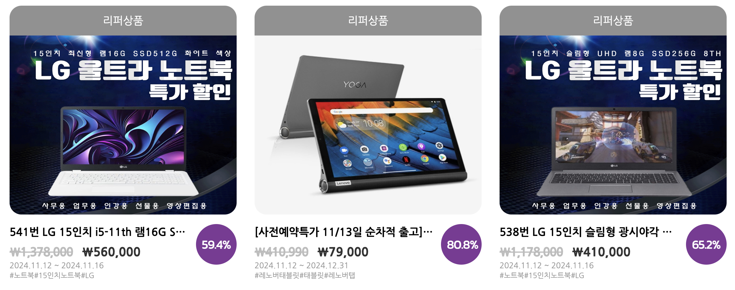 | 2024 코리아세일페스타 노트북 떴어요! (2) | 2024.11.12 |